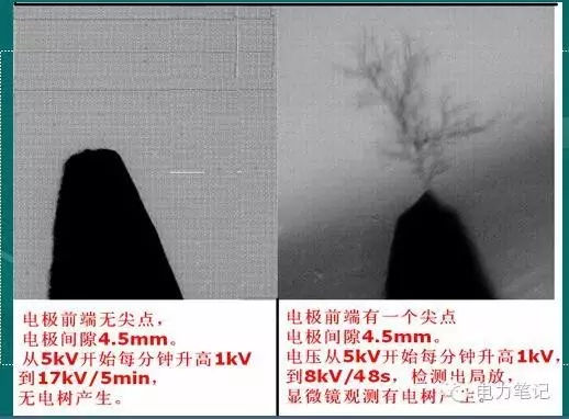 試驗:針板電極試驗、氣隙更易產(chǎn)生電樹