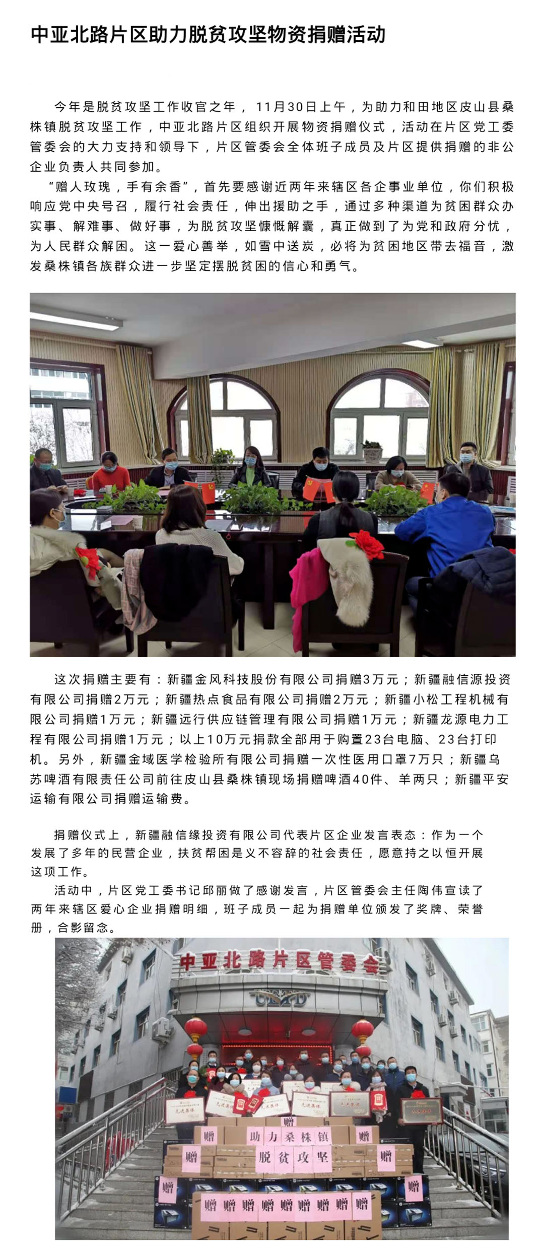 中亞北路片區(qū)助力脫貧攻堅物資捐贈活動